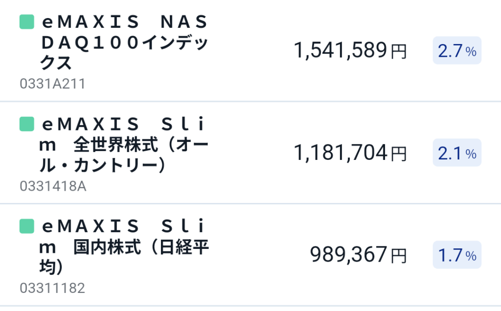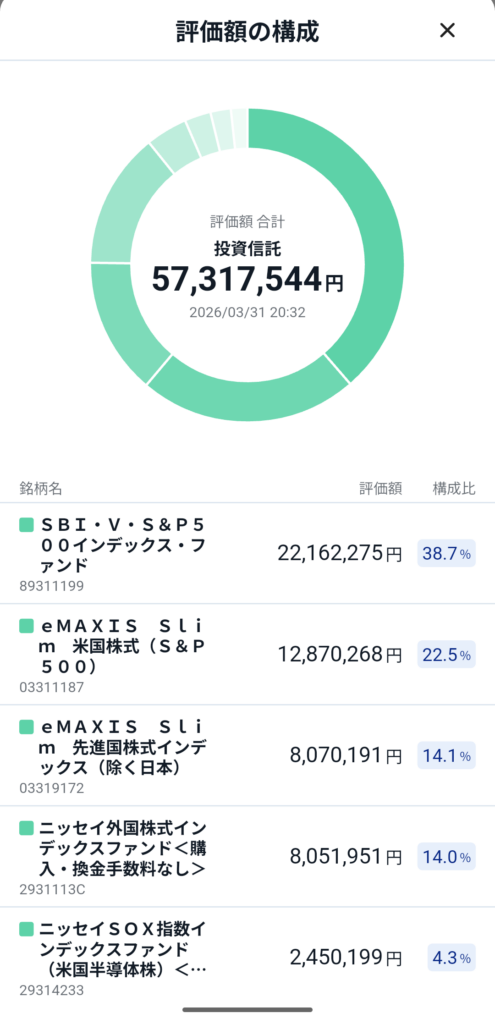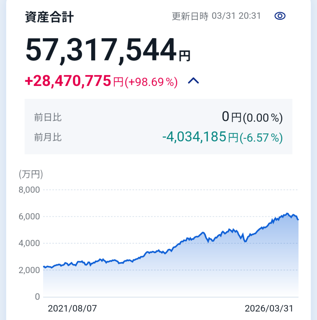 SBI証券の画面なんだが見てほしいのは資産合計ではなく前月比だ